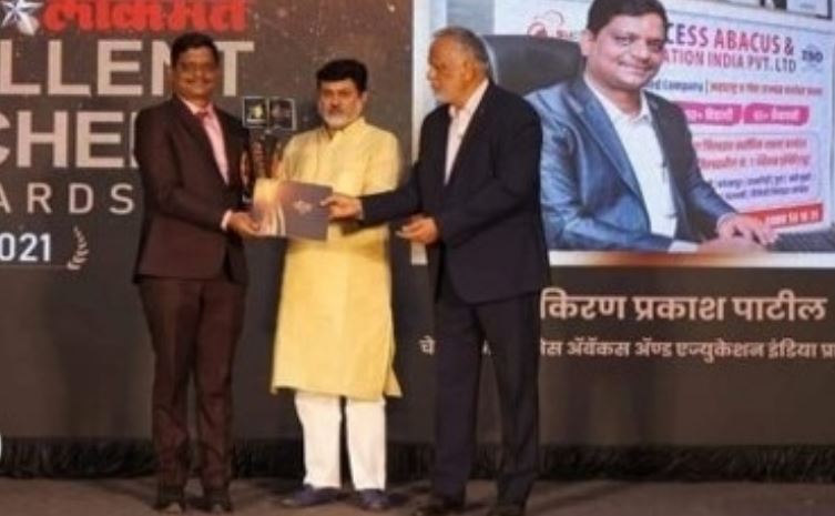 Hon. Kiran Patil Sir, the founder of Success Abacus, was honored with the ‘Lokmat Excellence Teachers Award 2021’ by Hon. Uday Samant, State Minister of Higher and Technical Education.