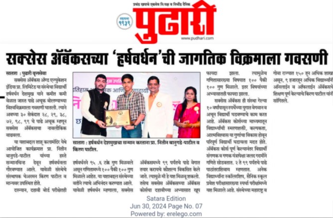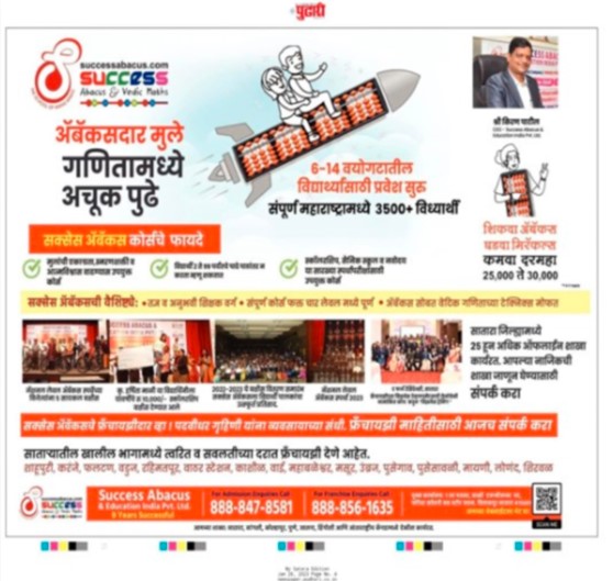 On July 7, 2024, a full-page article about Success Abacus was published in all editions of the Sakal newspaper across all districts of Maharashtra.