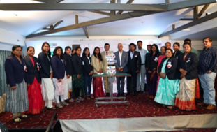 Presenting the Scholarship Check Hon. Dr. Pratima Mudgal, Hon. Sandeep Patil, Hon. Shri Balaji Dhanve, Hon. Shri Balaji Mule, Hon. Shri Amar Rasale, Hon. Shri Dhananjay Jadhav, and esteemed guests.
